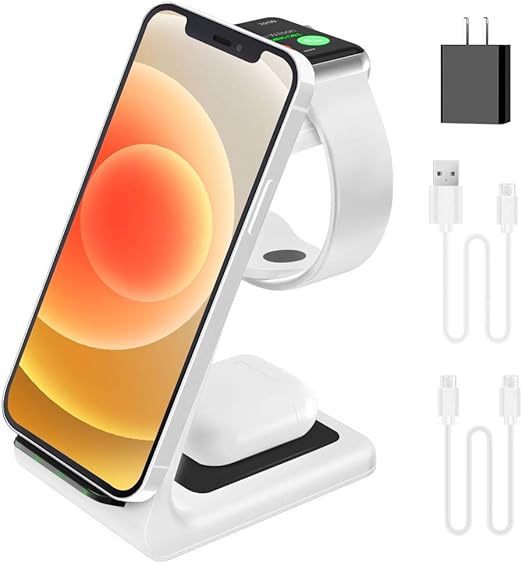 Amazon Com 2021 Update Wireless Charging Station Joygeek 3 In 1 Wireless Charger Qi Fast Charging Stand Dock For Apple Watch Se 6 5 4 3 2 Airpods 2 Pro Iphone 12 12 Pro 11 Se X Xr Xs Xs Max 8 Plus White